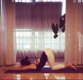 下面的動作是從瑜珈轉變過來,追求柔軟,放松,使背部反弓,達到嬌正的目的。