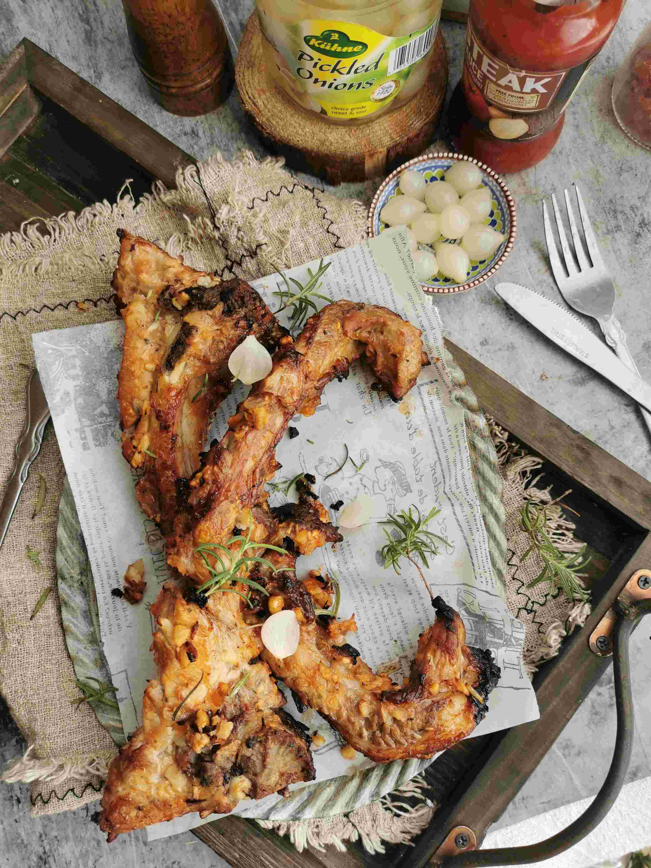 9.電烤箱200度加熱好,放進豬排骨烤制