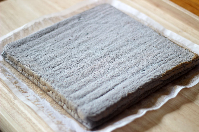 烤好的蛋糕胚立刻取出,撕去油紙降溫