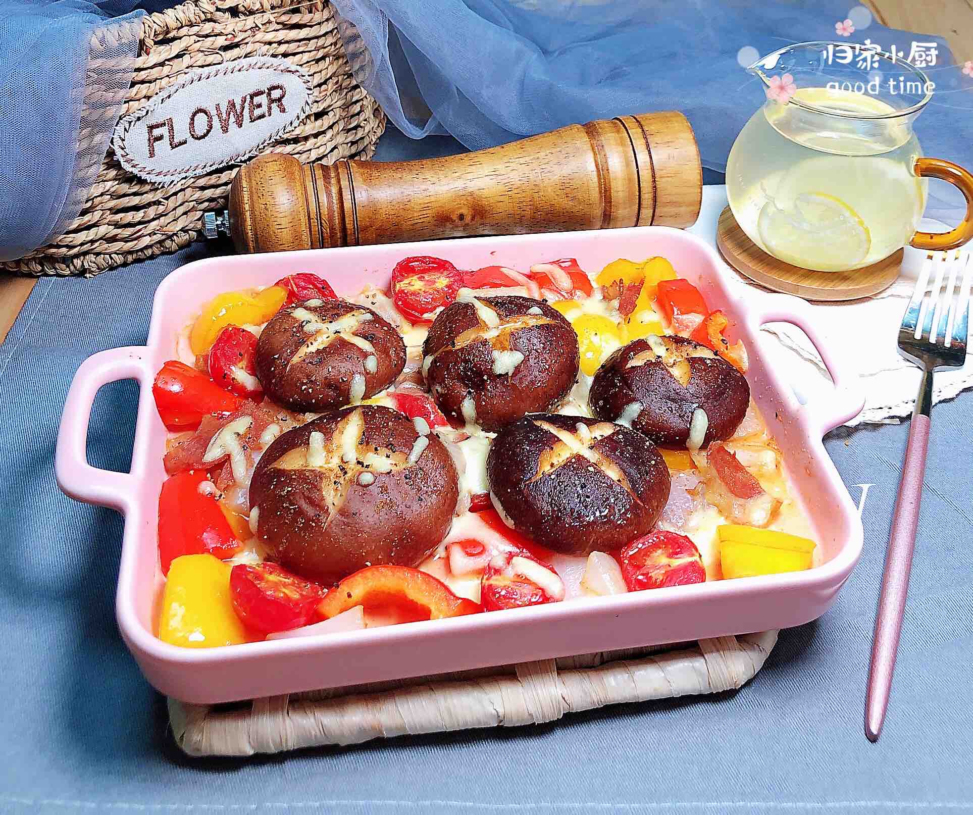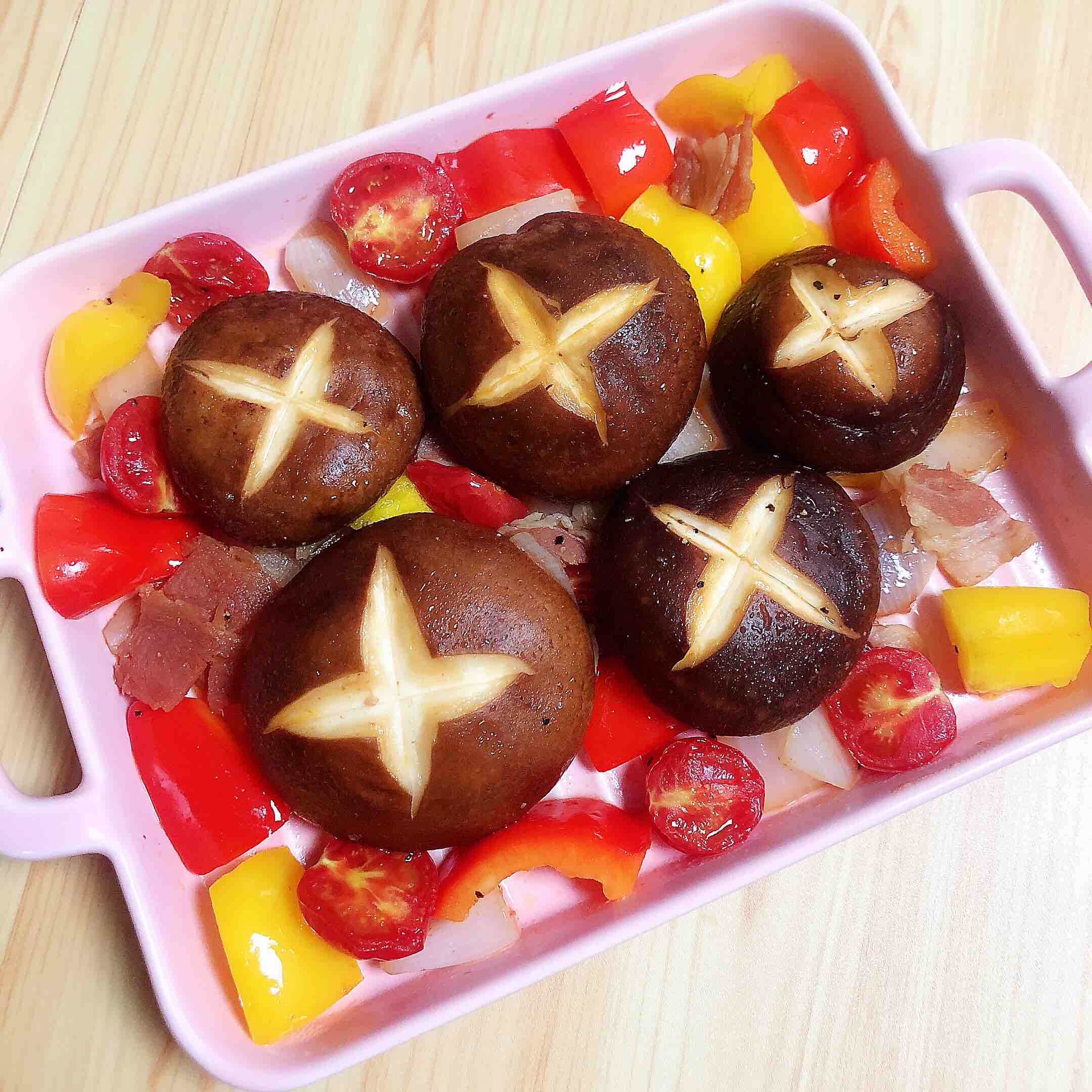 1.準備好平菇、黃椒、紅椒、圣女果。